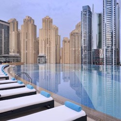 The hotel is directly linked to the popular Dubai Marina Mall, which boasts 160 stores from eclectic boutiques to high-end designer brands, while those in search of sea and sand will find the beach mere minutes away.