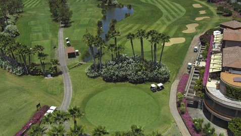 The course which covers over 90 hectares of land is situated in the heart of Playa de Las Americas. One of the most notable features is its streams, ravines and lakes which cross the course. Water comes in to play on the 1st, 2nd, 3rd, 5th 12th, 13th, 17th and 18th holes. The clubhouse overlooks the 18th fairway and green and both the 1st and 10th tees are also located close to the clubhouse.